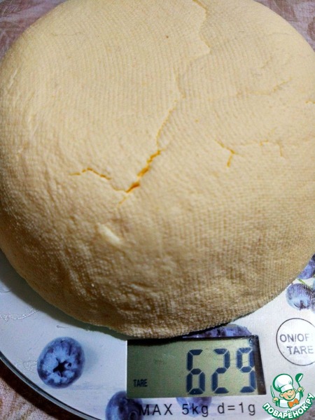 Охлажденную массу выложите в дуршлаг или пасочницу, застелив влажной марлей в 3-4 слоя.